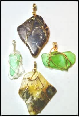 Learn to make this popular and highly versatile design in gold or silver wire and your choice of a natural stone, beach glass, dichroic fused glass or seashell. No experience required. All materials supplied.