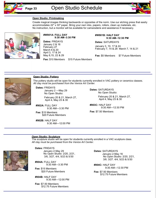 Open Studio Winter Spring Schedule 2026
